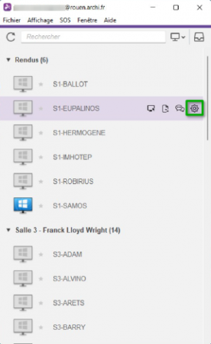 Les ordinateurs allumés auront le symbole de l’écran en bleu. Cliquez sur le premier symbole pour pouvoir s’y connecter.
